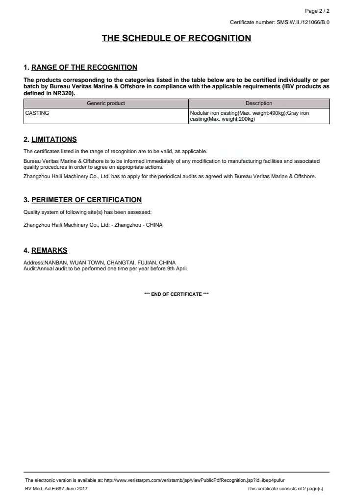 2019年通過法國BV船級社和中國船級社認(rèn)證;